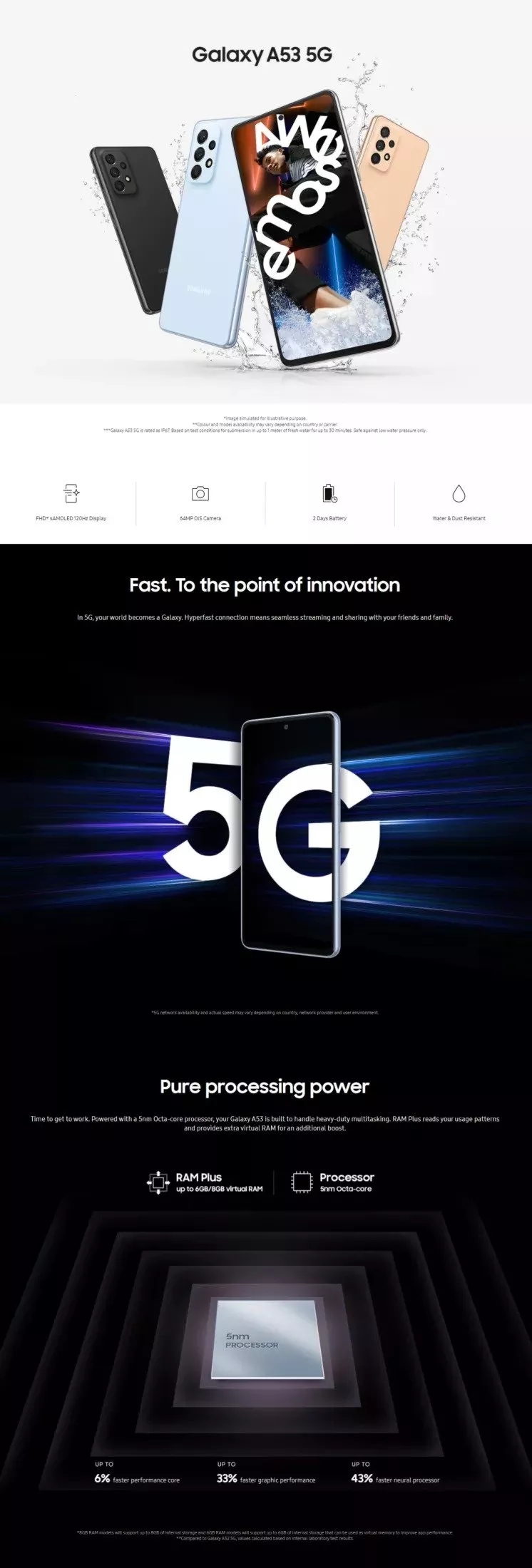 三星Galaxy A53 5G 128GB或256GB(免费:钢化玻璃+后盖)