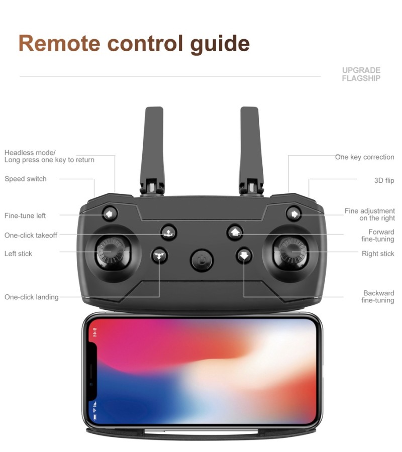 Function:Headless mode, Altitude Hold Mode, With Camera, With LED lights, One Key Takeoff / Landing, APP Control, With Remote Control, Foldable