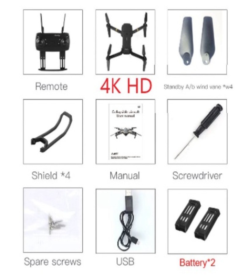 E58遥控无人机4K高清摄像头WIFI FPV无人机迷你可折叠四轴飞行器无人机爱好玩具礼品一键返回高度保持广角摄像头